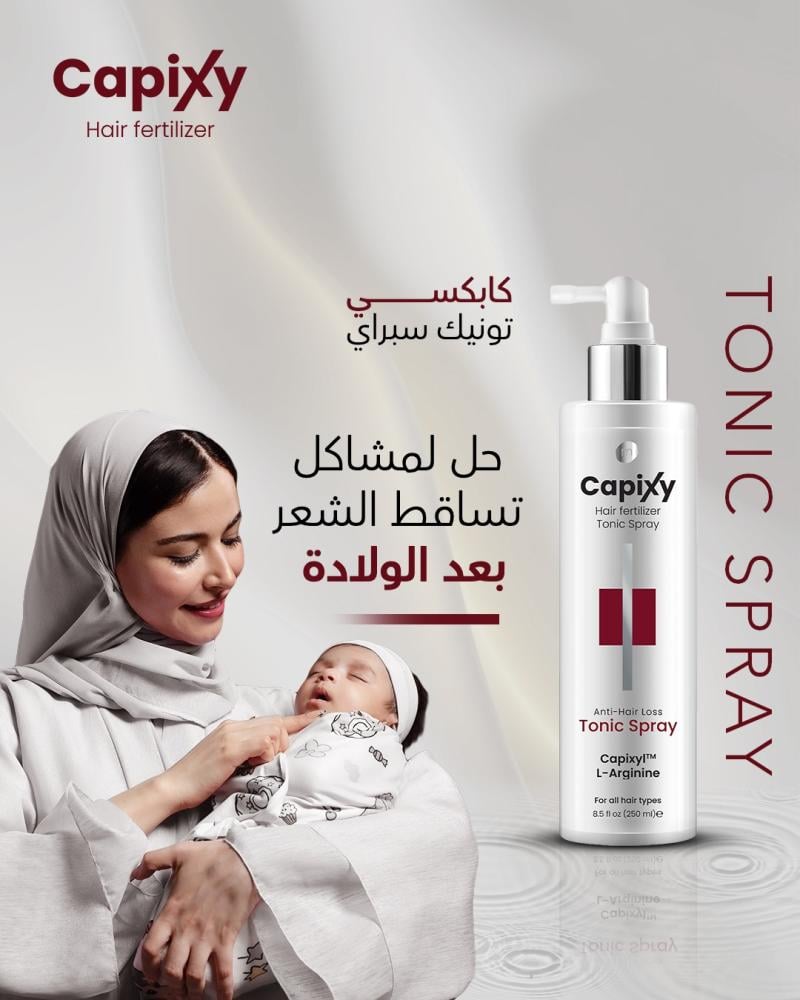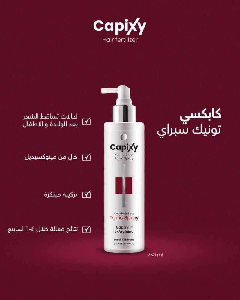 Capixy tonic spray تم تصميمه ليعزز نمو الشعر من الجذور ويعيد لفروة الرأس توازنها الحيوي، ما يجعله خيارًا مثاليًا للعناية اليومية، حتى للأطفال والنساء بعد الولادة.